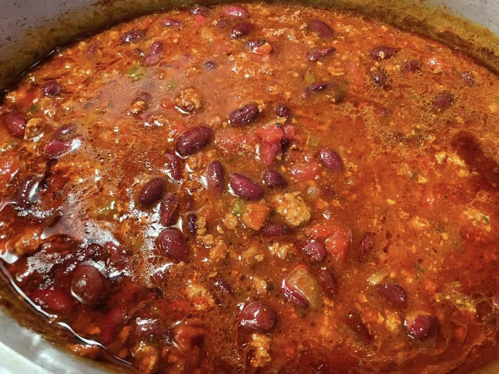 This is a classic recipe for a hearty and flavorful chili, similar to the one shown in your image, typically made with ground meat, beans, and a rich, spicy tomato base.